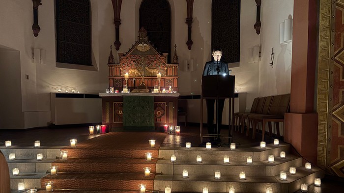 Ein besonders ergreifendes Element war die musikalische Gestaltung. Das gemeinsame Gedenken zwischen Christen und Juden wurde durch mehrere Momente der Stille mit Klezmermusik untermalt. Die Melodien dieser jüdischen Volksmusiktradition füllten den Raum und erzeugten zusammen mit dem hell erstrahlenden Kerzenschein eine dichte und hoffnungsvolle Stimmung.